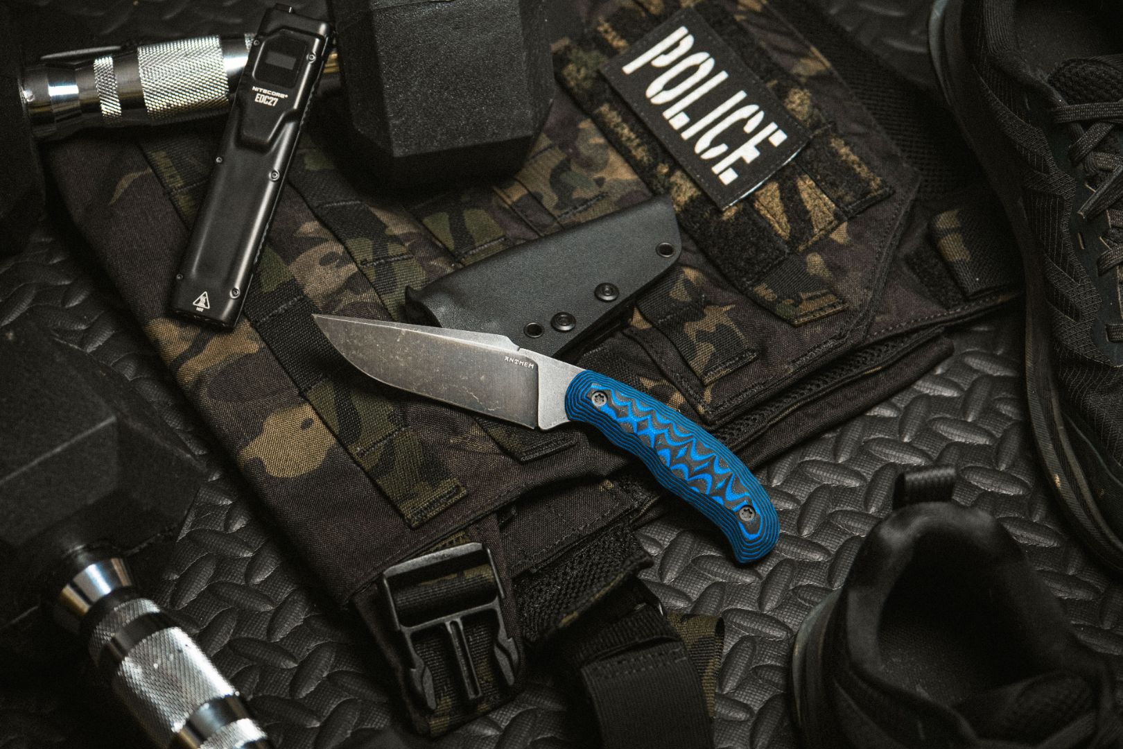 Each Nightwatch is hand-sharpened and finished in stonewash steel or with the added resilience of E-Series Cerakote® finish. Locked into a deep-carry Kydex sheath, it stays ready at your side and stands watch when you need it most.