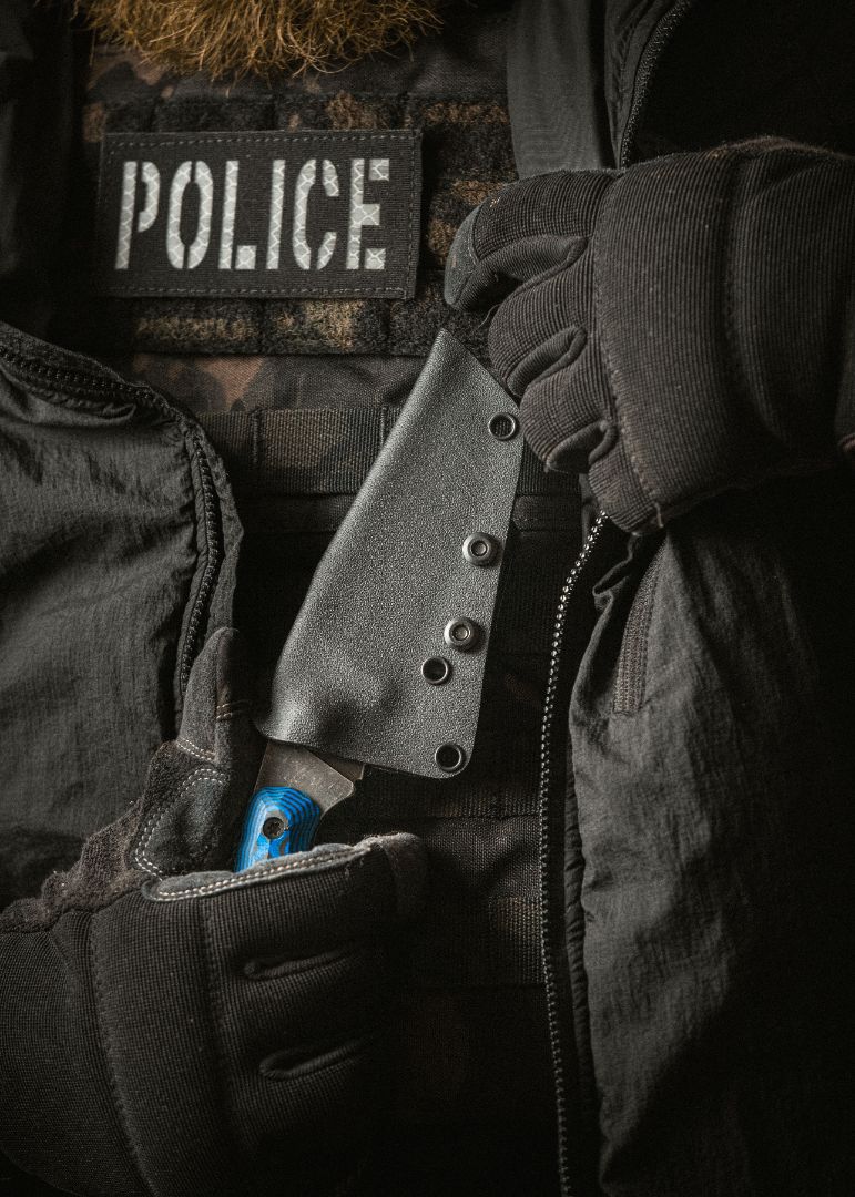 At 8 inches, the Nightwatch is a knife that commands space. Forged from 5/32 inch 52100 steel, it has the backbone to withstand abuse yet still slices clean when the work calls for precision. The harpoon tip adds strength where it counts and gives your thumb a natural anchor, while the double finger coil and drop-curved handle steady your grip in any stance. From breaking down game to holding your ground, it’s a blade that does not back down.